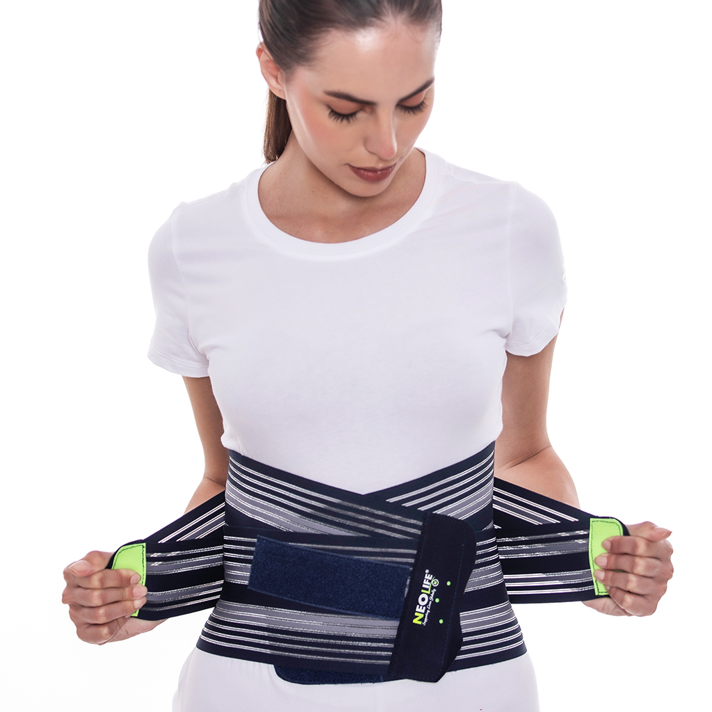 Adjust the support by centering back panel and apply the hooks & loop closure